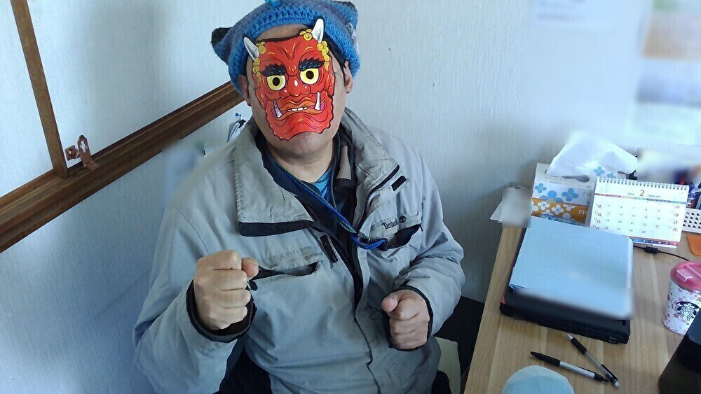 というわけではなく。利用者さんがお面をかぶって、ぜひ写真をということでしたので、撮らせていただきました(笑)